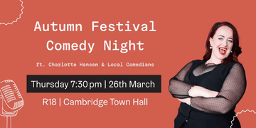 Join us for an evening of witty, unpredictable stand-up at Cambridge Town Hall, part of the 2026 Autumn Festival.
